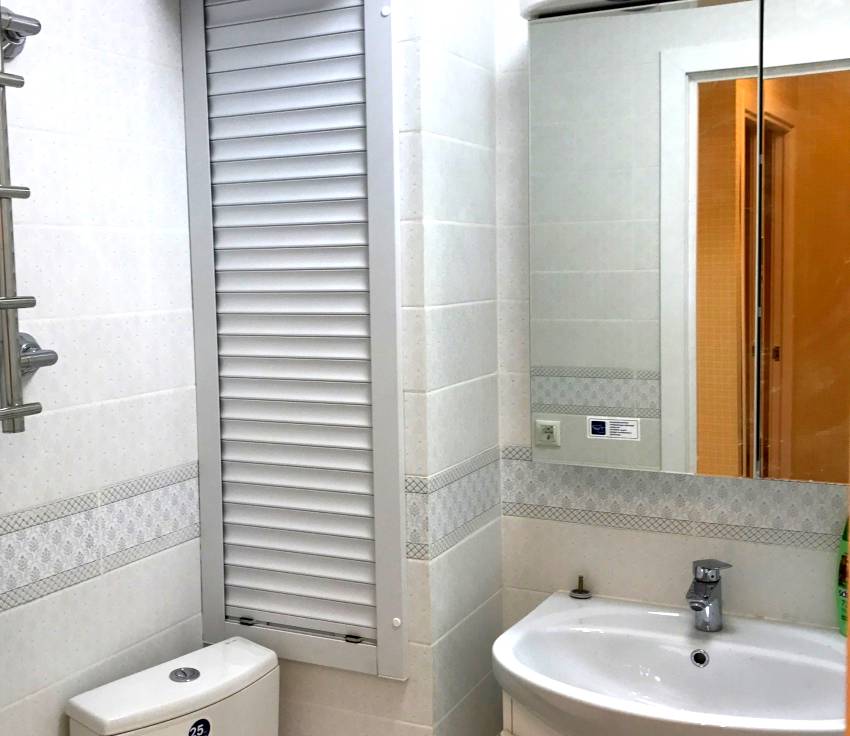 Этот вариант по сравнению с жалюзи является более надежным, но мало соответствует площади большинства санузлов. Если размеры туалета позволяют, то лучше установить именно рольставни. К тому же существуют автоматические модели, которые можно открывать с помощью пульта.