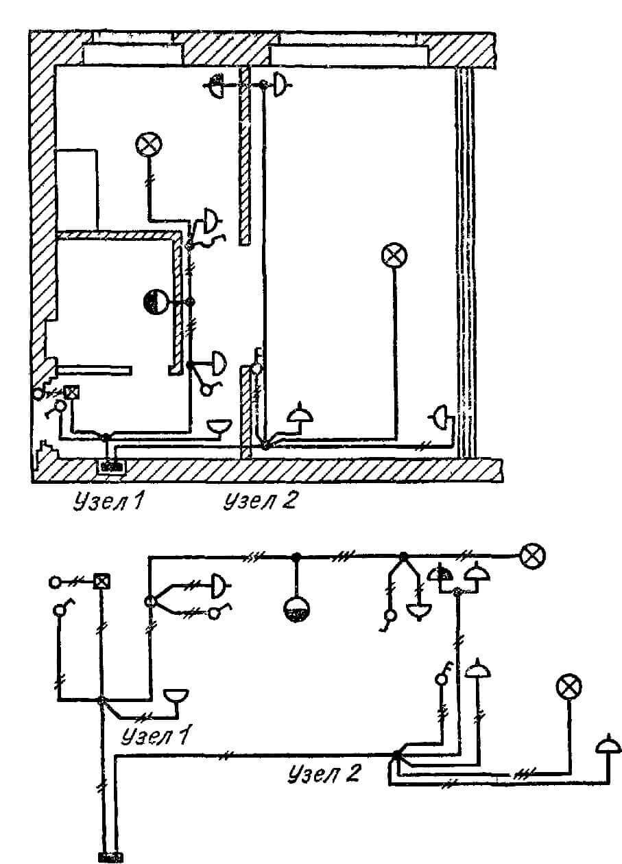 Рисунок 4. Принципиальная схема электропроводки однокомнатной квартиры.