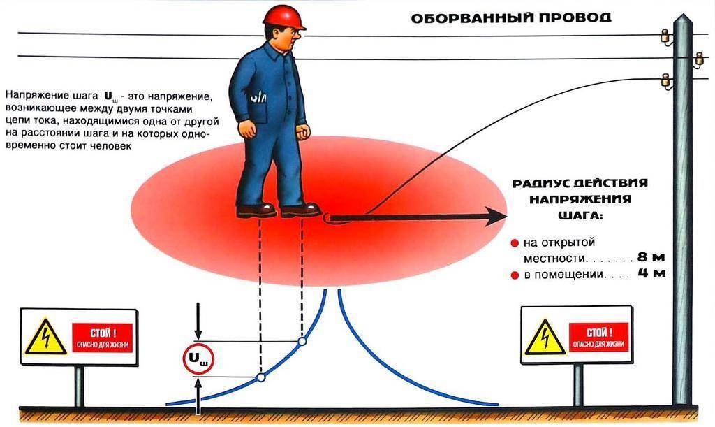 В иных электроустановках, где ток замыкания на землю может существовать длительное время, на это тоже обращают особое внимание. Кстати, шаговое напряжение – термин, который активно используют в электробезопасности в части приближения к токоведущим частям, замыкающимся с землёй в открытых и закрытых распределительных устройствах