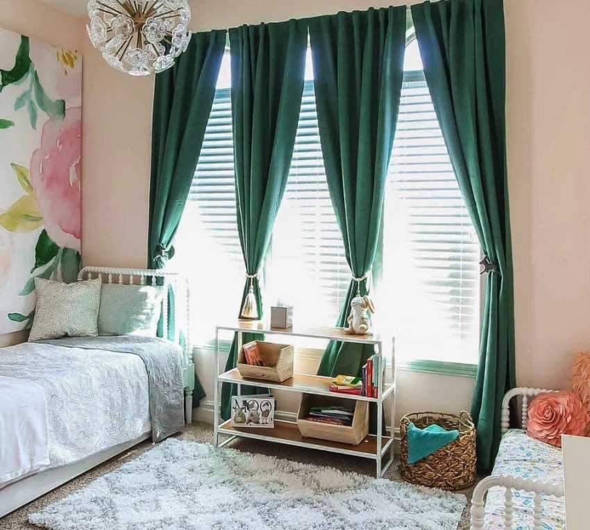 Комната ребенка предназначена для игр, занятий и сна. При гиперактивности ребенка стоит присмотреться к хвойному и изумрудному цвету. Для детей, нуждающихся в концентрации внимания, подойдут оливковые шторы.