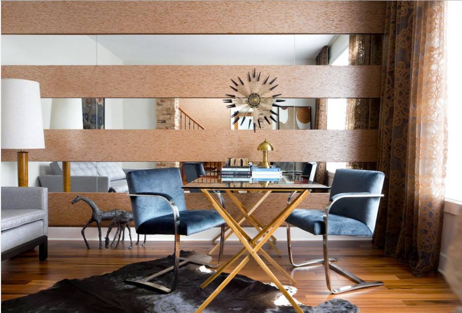 Межкомнатная перегородка, обрамленная зеркальной плиткой