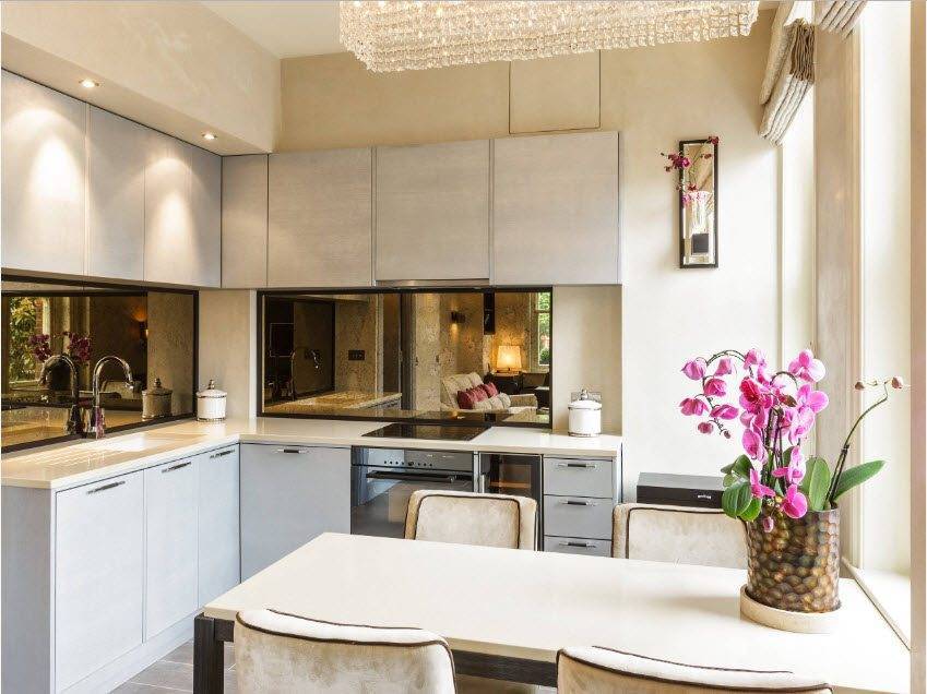 На заметку: по китайскому древнему философскому учению фэншуй в зеркале на кухне должна отражаться зона готовки или обильно накрытый стол. В первом случае это принесет удобство и комфорт хозяйке, во втором – привлечет богатство и достаток.