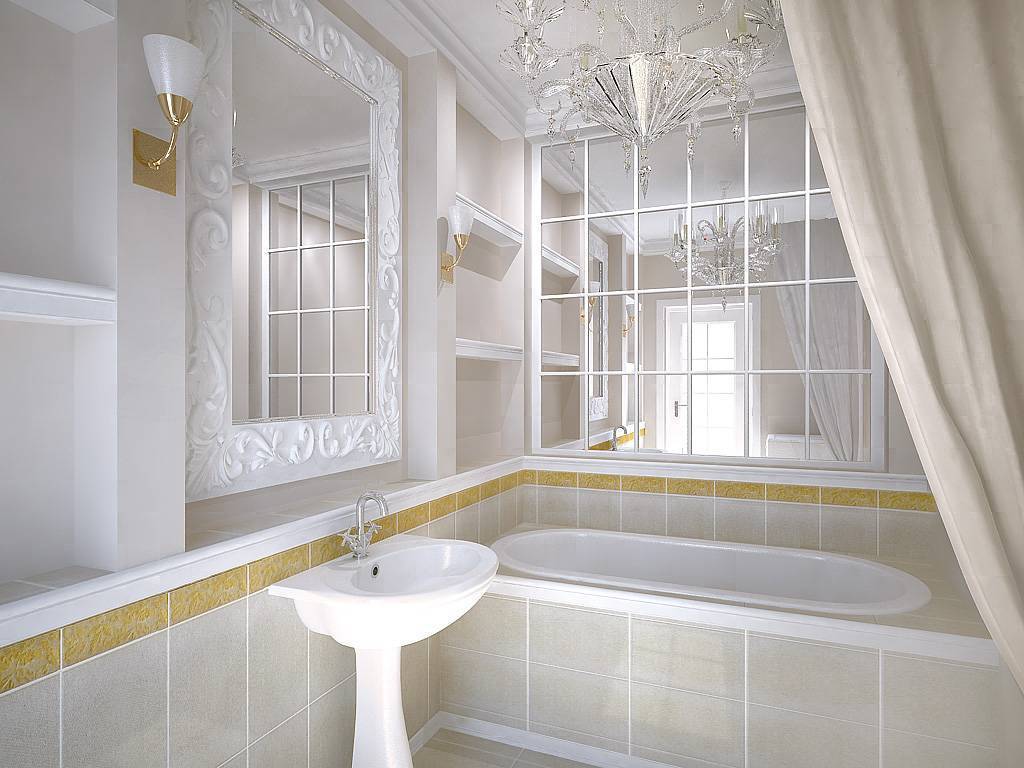 Совет! Одновременно сделать комнату выше и шире поможет облицовка одной из стен зеркальной плиткой, уложенной ромбами или диагонально.