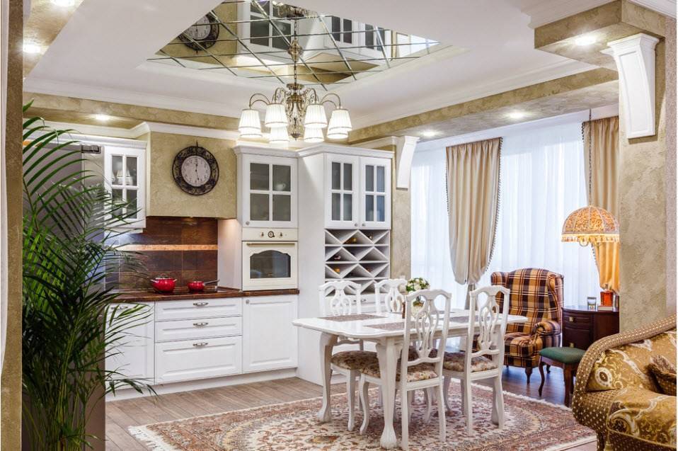 Совет! Дляслишкомбольшогопомещениядекорпотолкаспомощьюзеркальнойплиткинерекомендован, посколькуможетсоздатьэффектпустоты, холодности.