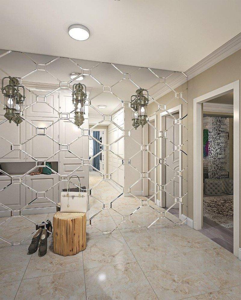 Зеркальная плитка с фацетом в прихожейИсточник yugros.ru