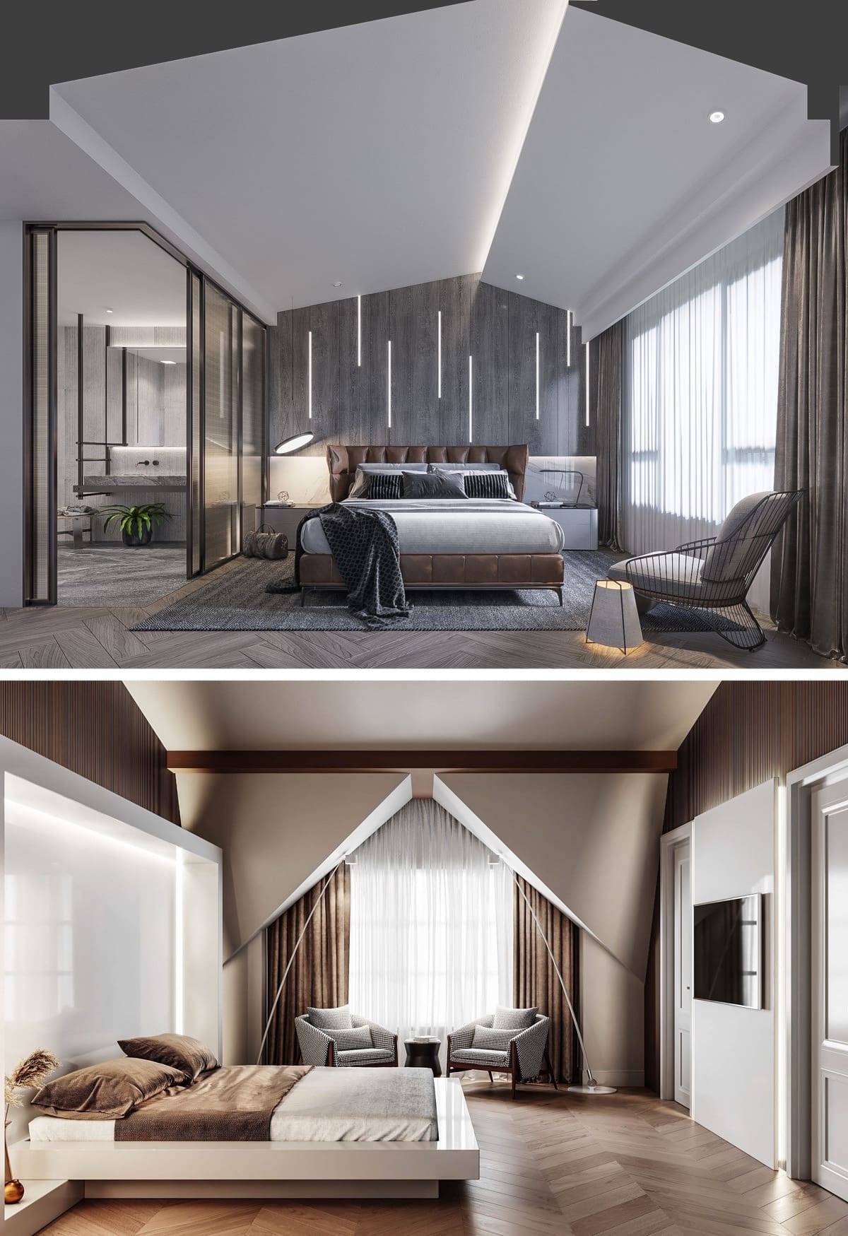 Они могут переходить на стеновые плоскости, зонируя пространство, или дополняются зеркальными элементами. Изящно выглядят с художественно решенной светодиодной подсветкой.