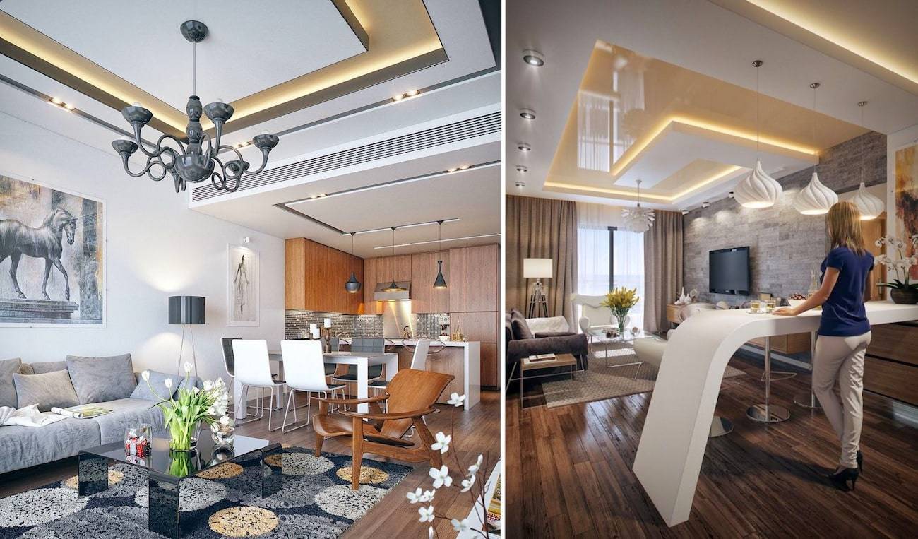 Варианты дизайна комбинированного потолка 2021