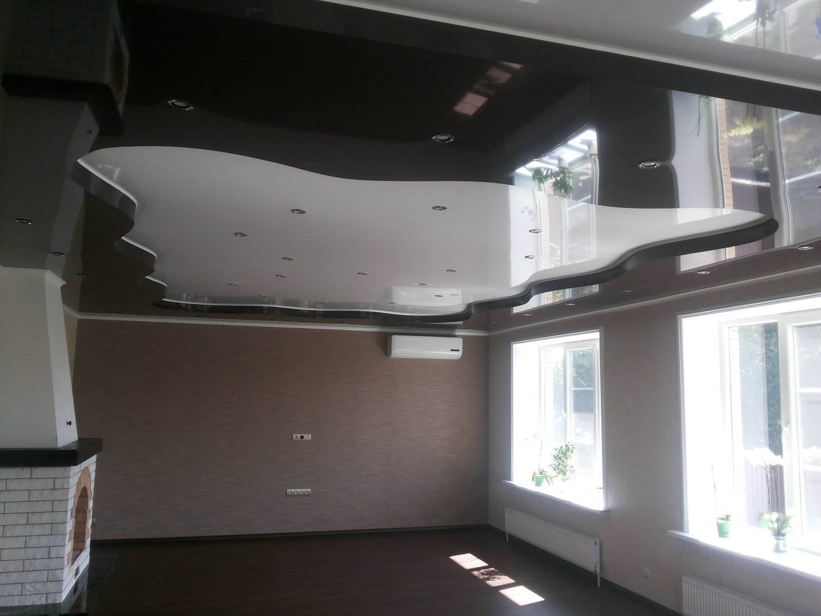 Двухуровневый зеркальный натяжной потолок (глянцевые полотна)
