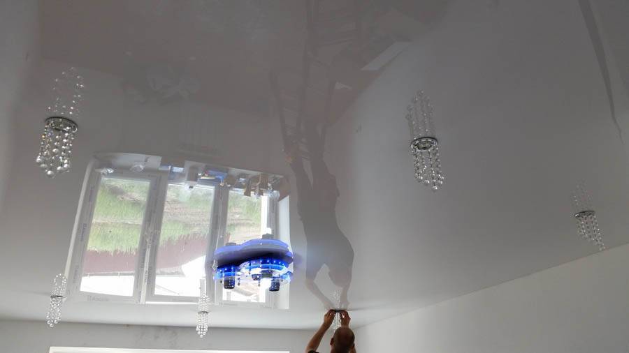 Глянцевая натяжная пленка обладает прекрасным зеркальным эффектом. Однако в отличие от настоящего зеркала, ее отражение не такое четкое и имеет размытые контуры.