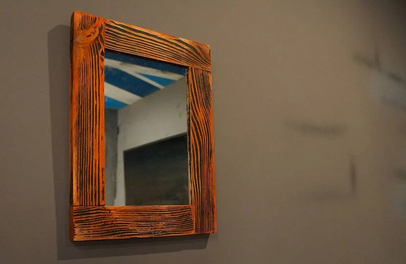 Деревянная рамка для зеркала с прожилками полотна древесиныИсточник cargocultworkshop.ru