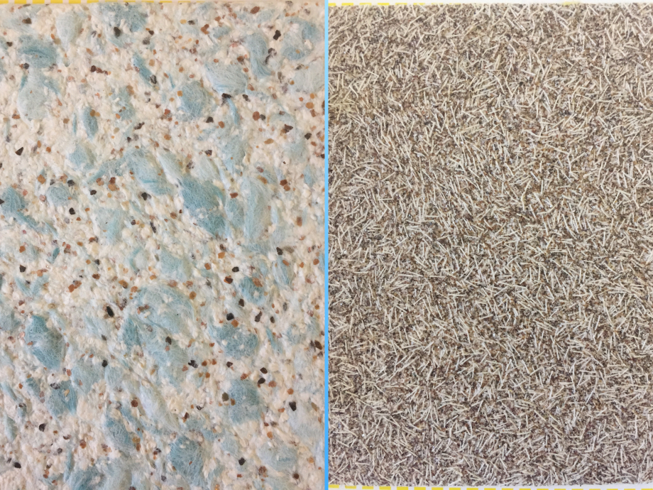 Жидкие обои называют иногда декоративной штукатуркой. Это не совсем верно. По консистенции сходство есть, а вот по составу ничего общего. В штукатурке всегда содержится песок, цемент или известь, а жидкие обои состоят из волокон шёлка, хлопка, целлюлозы и клея с добавлением акриловых красок.