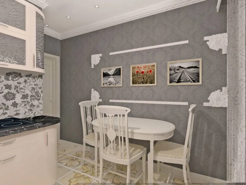 Для кухни выбираются рисунки, поднимающие аппетит. Хорошо смотрятся натюрморты. Рекомендуется избегать кричащих узоров