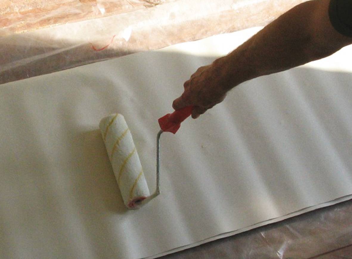 Нанесение клея на полотно.