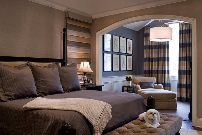 Если комната декорируется обоями, то и для спальни, и для гостиной необходимо придерживаться единого стиля. Классические орнаменты не сочетаются с современной абстракцией, но будут отлично гармонировать с полосатыми обоями. Дизайнеры не рекомендуют перегружать интерьер узорчатыми покрытиями, а одну стену лучше оставить однотонной.