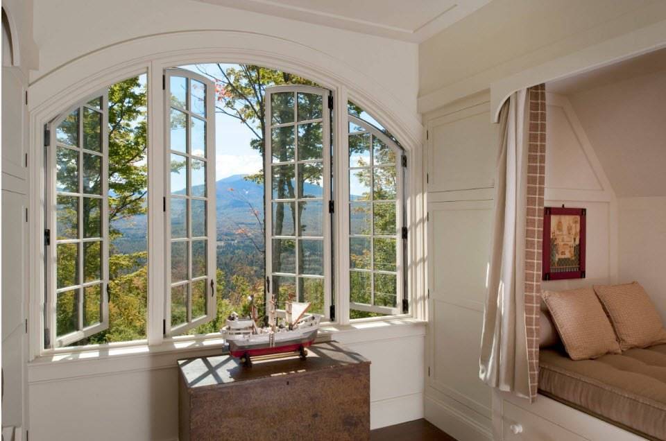 Если в комнате нестандартно выполнена область окон (например, аркой), то эту зону легко отделить складной конструкцией. В случае необходимости она быстро сворачивается, расширяя пространство.