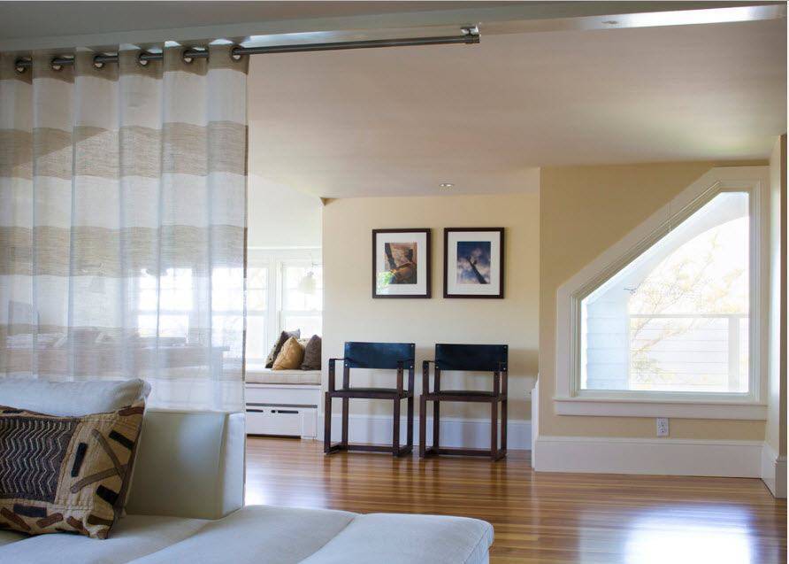 Зонирование гостиной шторами: всегда уместные раздвижные перегородки