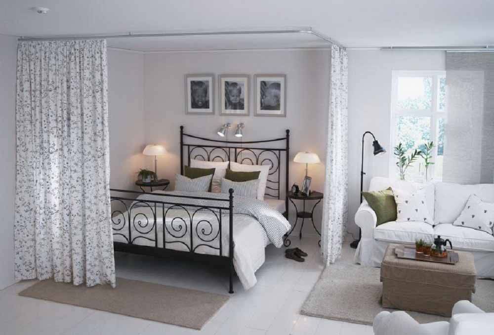 Обратите внимание! Зонирование единственной комнаты с помощью штор дает возможность не обращать внимания на передвижение по комнате членов семьи и углубиться в «объятья Морфея». Но этот способ приемлем и в проходной спальне, когда кто-то страдает от бессонницы или чутко спит